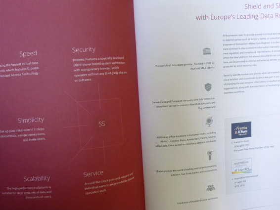 Drooms is one of the leading providers of virtual data rooms and other secure cloud services for finance, real estate, legal, life science, energy and other industries. The software house successfully developed from a start-up and is now celebrating its 15th year. With the company growing globally and enlarging its range of products, the simplistic primal brand reached the point where it needed to be revised.